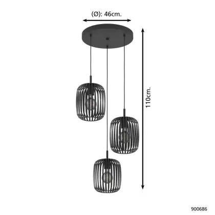 Eglo Pendelleuchte Romazzina Stahl Schwarz | Geeignet für 3x E27