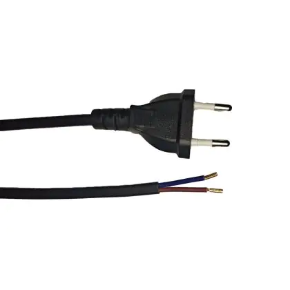 Euro Versorgungskabel Schwarz - C7 Europlug + Offene Enden - 2m - 2 pole 0,75mm2