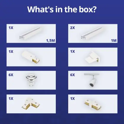 Komplettset 1-Phasen Rail L 1,5 x 2 Meter Weiß | incl. 6x Spot + GU10 2700K 3W Dimmbar + Abschlusskappe, Stromanschluss und L -Verbinder