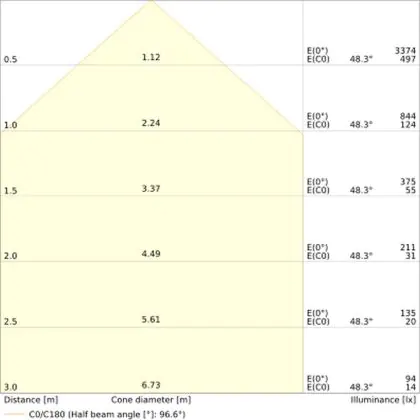 Der Abstrahlwinkel bezeichnet den Winkel, in dem das Licht aus der Lichtquelle ausgestrahlt wird. Er wird in Grad (D) angegeben. Je geringer die Gradzahl des Abstrahlwinkels ist, desto kleiner ist auch der Durchmesser des Lichtkegels, den die Lichtquelle produziert.