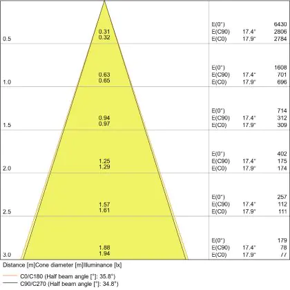 Der Abstrahlwinkel bezeichnet den Winkel, in dem das Licht aus der Lichtquelle ausgestrahlt wird. Er wird in Grad (D) angegeben. Je geringer die Gradzahl des Abstrahlwinkels ist, desto kleiner ist auch der Durchmesser des Lichtkegels, den die Lichtquelle produziert.