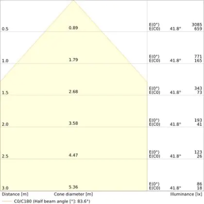 Der Abstrahlwinkel bezeichnet den Winkel, in dem das Licht aus der Lichtquelle ausgestrahlt wird. Er wird in Grad (D) angegeben. Je geringer die Gradzahl des Abstrahlwinkels ist, desto kleiner ist auch der Durchmesser des Lichtkegels, den die Lichtquelle produziert.