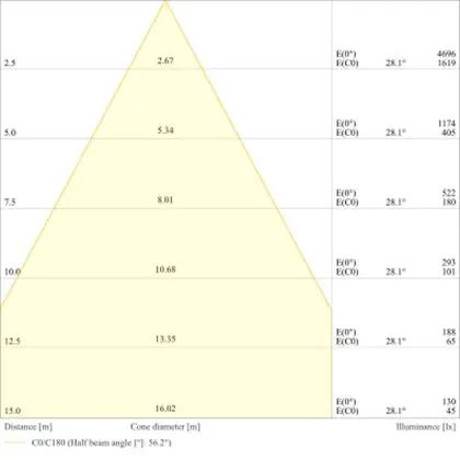 Der Abstrahlwinkel bezeichnet den Winkel, in dem das Licht aus der Lichtquelle ausgestrahlt wird. Er wird in Grad (D) angegeben. Je geringer die Gradzahl des Abstrahlwinkels ist, desto kleiner ist auch der Durchmesser des Lichtkegels, den die Lichtquelle produziert.
