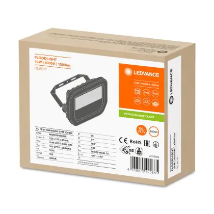 Ledvance LED-Scheinwerfer GEN 3 Schwarz 10W 1200lm 100D - 840 | IP65 - Symmetrisch