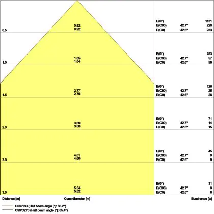 Le code couleur se compose de l'indice de rendu des couleurs (IRC) et de la température de couleur (Kelvin). Le premier chiffre indique le rendu des couleurs (1 = très mauvais rendu des couleurs, 9 = meilleure authenticité des couleurs). Le deuxième et troisième chiffre indiquent la température de la couleur. Exemple : Le code couleur "830" indique que la lampe a un bon rendu des couleurs (8) et une couleur de lumière blanche chaude (30 = 3000K). |