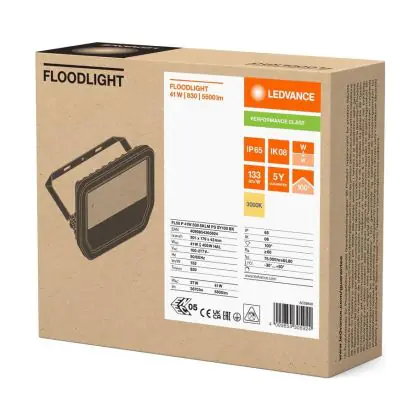 Le Ledvance Projecteur LED Aluminium Noir 41W 5500lm 100D - 830 | IP66 - Symétrique permet une économie d’énergie importante tout en conservant une excellente qualité d’éclairage. Sa technologie LED Intégré lui permet également d’avoir une très longue durée de vie pouvant aller jusqu’à 100000 heures. Ce projecteur LED est étanche, avec son indice de protection IP66 lui permettant d’être hermétique à la poussière et à l’eau. Disponible dans la couleur 3000K - Blanc Chaud et un flux lumineux de 5500 Lm, ce projecteur LED est la solution idéale pour le remplacement de vos anciens projecteurs conventionnels.