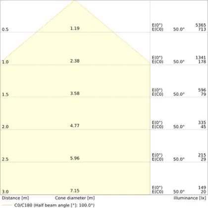 • Angle de diffusion: 100 °