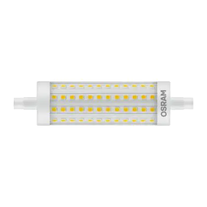 Osram Parathom Line LED R7s 118mm 13W 1521lm - 827 | Remplacement 100W est une ampoule tubulaire linéaire à double extrémité. Ce type d’ampoule permet de délivrer une lumière homogène à 360° avec comme température de couleur 2700K - Blanc Très Chaud. Cette ampoule LED R7s de chez Osram est la solution idéale pour le remplacement de vos anciennes ampoules halogènes. Cette ampoule LED n’a pas besoin de transformateur, elle fonctionne avec 230V et peut se connecter directement sur le secteur électrique.