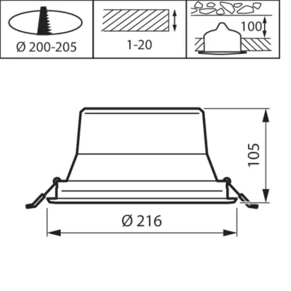 Description Philips Spot encastrable LED Coreline DN142B Aluminium Blanc 19.2W 2300lm 60D - 840 | Diamètre 200mm - IP20 - Dimmable - Blanc Réflecteur - Emergency